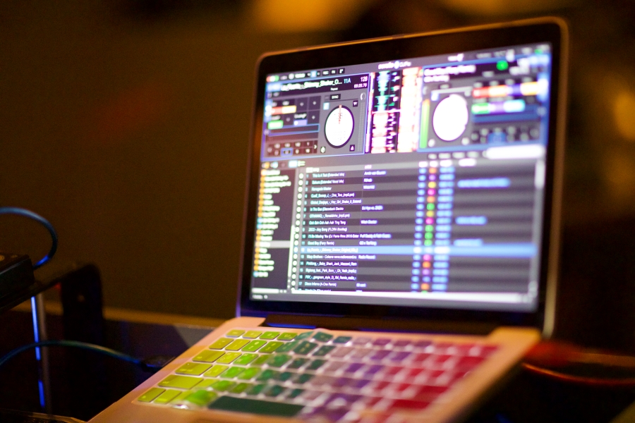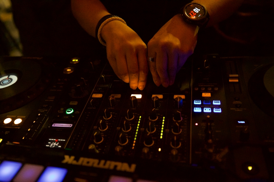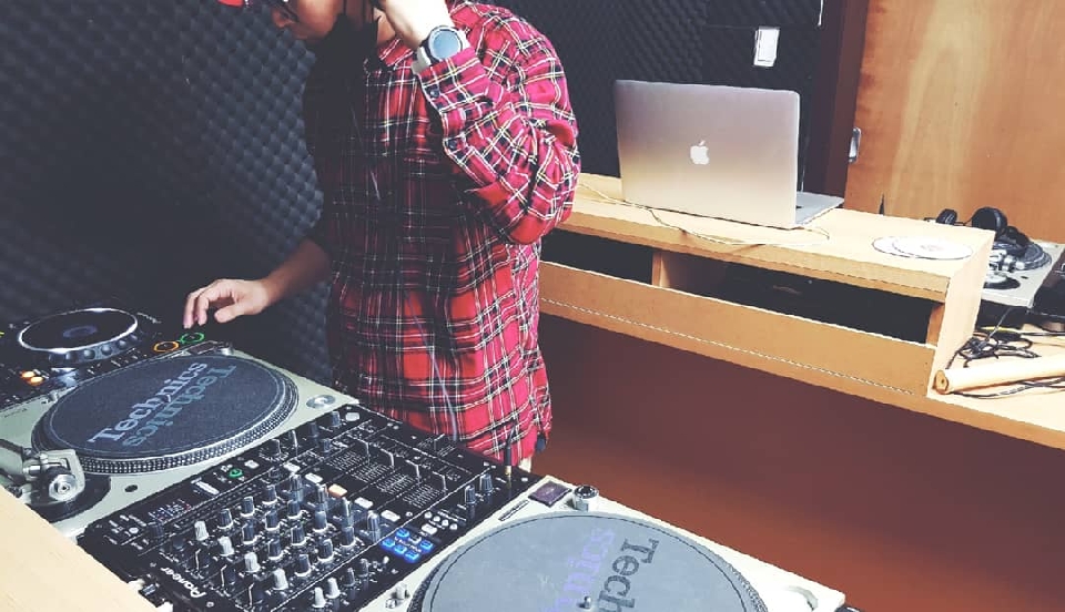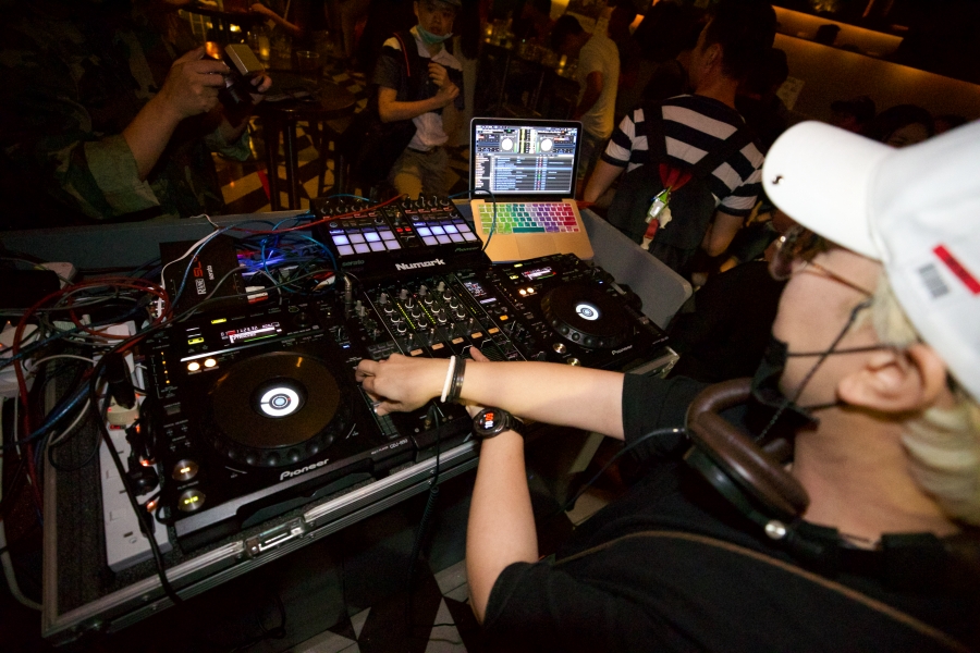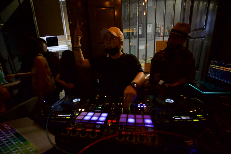 디제이 부스에 서서 내가 음악을 틀고